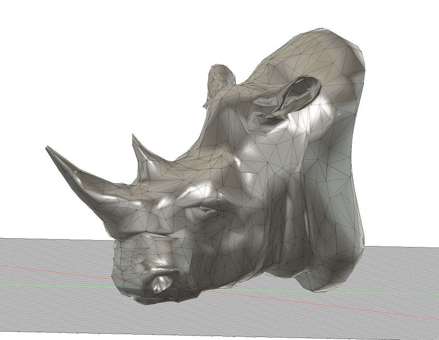 Representación del STL low poly del Rinoceronte en Fusion 360.