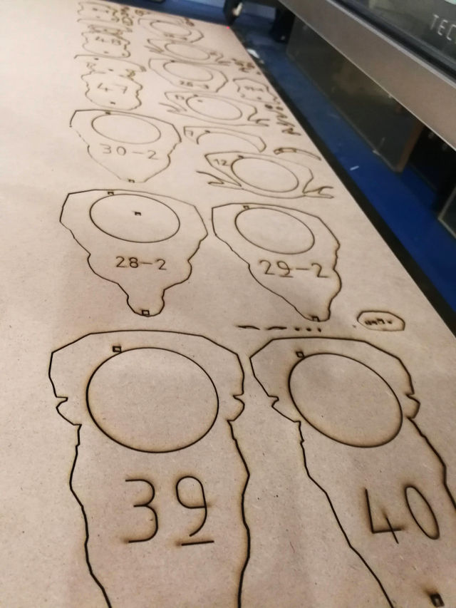El corte de las piezas, que quedan numeradas para facilitar el montaje.