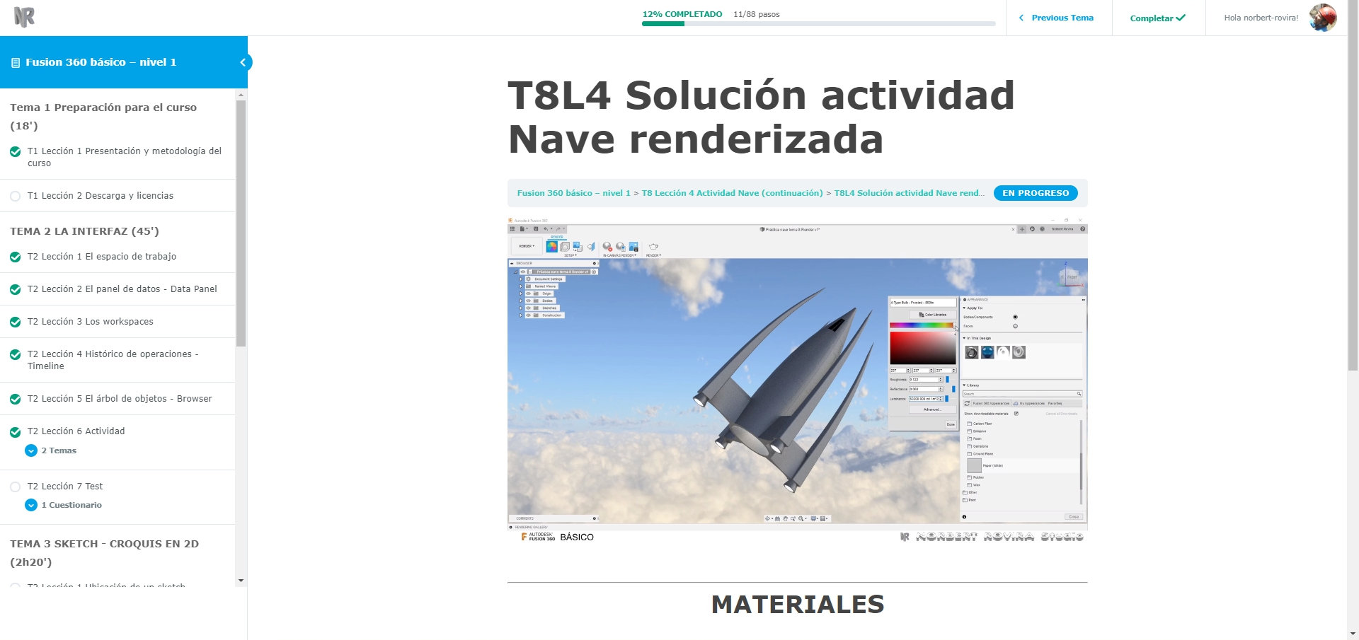 Es un curso fantástico para aprender Fusion 360, todavía no lo he terminado pero me está encantando, estoy aprendiendo muchísimo. Llevo el 30% del curso y ya estoy haciendo mis propios diseños. Se aprende muy bien fijando conceptos y Norbert se explica de maravilla.