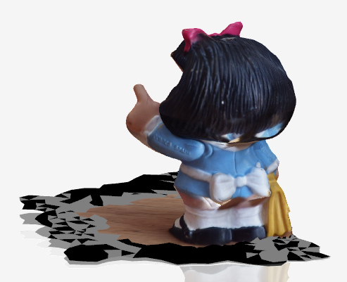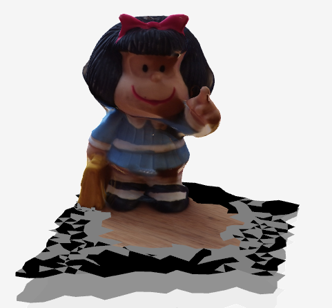 El modelo en color da bastante el pego, porque la textura en color disimula los defectos de captura de la malla del objeto. Pero para impresión 3D no parece adecuado.